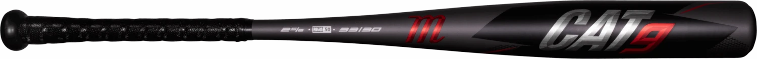 The Marucci CAT9 BBCOR Baseball Bat offers the standard 2 5/8 barrel diameter, -3 length to weight ratio, balanced swing feel, and is BBCOR Certified.ย